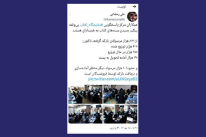 قائممقام و سخنگوی سی وچهارمین نمایشگاه بینالمللی کتاب تهران از توزیع ۶۰۷ هزار بسته کتاب در بین خریداران این دوره از نمایشگاه خبر داد. به گزارش ستاد خبری سیوچهارمین نمایشگاه بینالمللی کتاب تهران، علی رمضانی؛ قائممقام و سخنگوی سیوچهارمین نمایشگاه بینالمللی کتاب تهران در فضای مجازی نوشت: «همکاران مرکز پاسخگویی نمایشگاه کتاب بیوقفه پیگیر رسیدن بستههای کتاب به خریداران هستند. از ۸۲۱ هزار مرسوله بارکد گرفته تاکنون، ۶۰۷ هزار توزیع شده، ۱۸۷ هزار در حال توزیع و ۳۷ هزار آماده تحویل ...