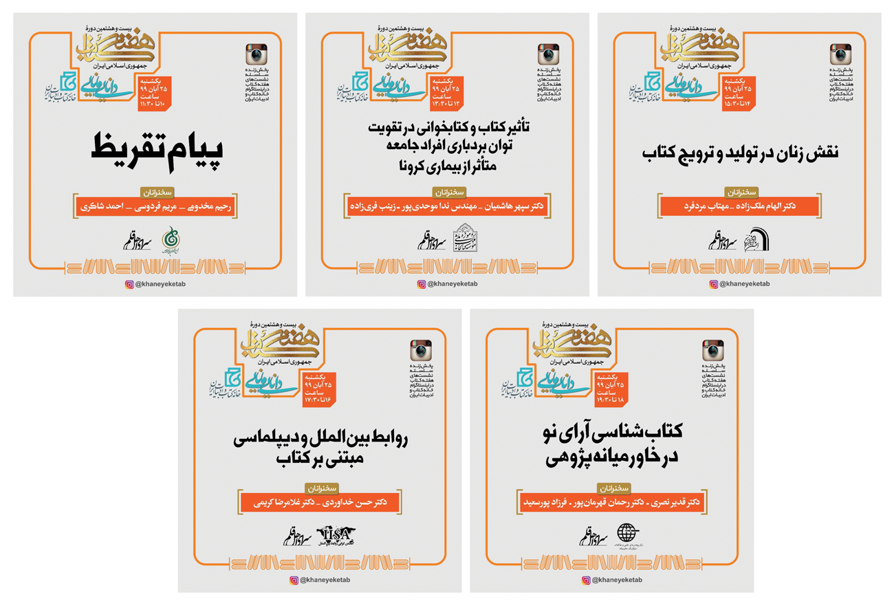 موسسه خانه کتاب و ادبیات ایران در دومین روز بیست‌وهشتمین دوره هفته کتاب جمهوری اسلامی ایران میزبان  پنج نشست تخصصی خواهد بود.  به گزارش ستاد خبری بیست‌وهشتمین دوره هفته کتاب جمهوری اسلامی ایران، نشست‌هایی که در روز یکشنبه بیست‌وپنجم آبان ماه همزمان با دومین روز از بیست‌وهشتمین دوره هفته کتاب جمهوری اسلامی ایران به صورت مجازی از سوی موسسه خانه کتاب و ادبیات ایران با همکاری سازمان‌ها، نهادها، انجمن‌ها و تشکل‌های فعال حوزه نشر برگزار می‌شود، به شرح زیر است؛ ...
