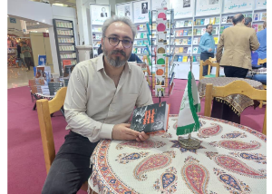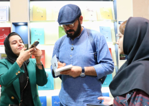 حامد عسگری کتابهایش را برای بازدیدکنندگان نمایشگاه کتاب امضا کرد