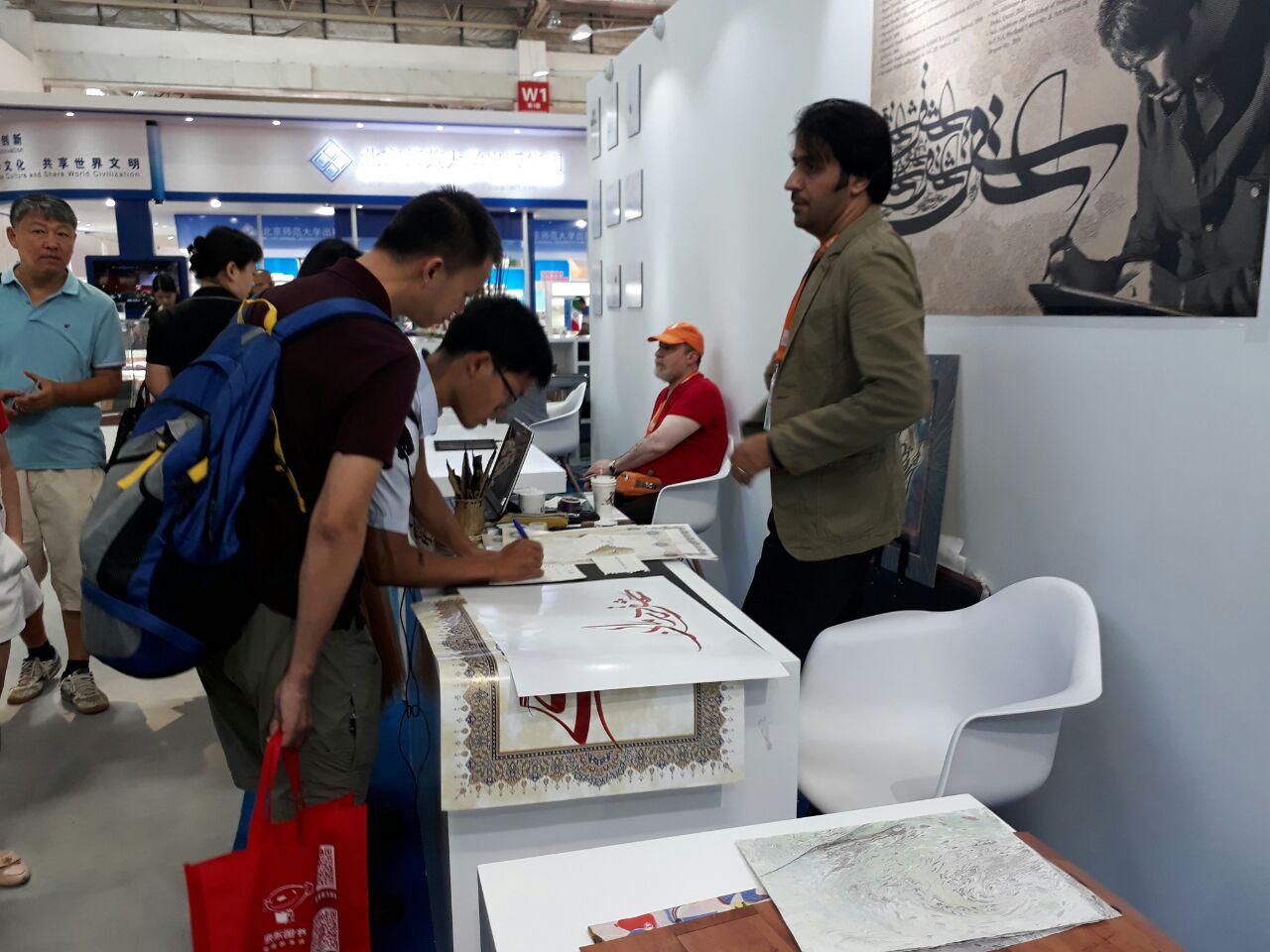 در اولین روز برگزاری نمایشگاه کتاب پکن خوشنویسی ایران مورد توجه و استقبال چینی ها قرار گرفت . به گزارش روابط عمومی موسسه نمایشگاه های فرهنگی ایران ، محسن ابراهیمی خوشنویس خط معلی و حسین شیرکوند خوشنویس نستعلیق در غرفه ایران حضور دارند. حضور این دو خوشنویس برتر کشورمان مورد توجه چینی ها قرار گرفته است و این دو بخش غرفه ایران همواره مورد توجه چینی ها است.نوشتن اشغار فارسی از شعرای ایران و اسامی مسلمانان چین در این بخش ...