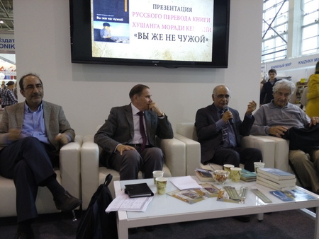 بعد از ظهر امروز غرفه ایران در نمایشگاه کتاب مسکو میهمان نویسندگان و مترجمان، هوشنگ مرادی کرمانی، جهانگیر دری، علی اصغر محمدخانی و پروفسور الکساندر پولیشوک، مترجم و ایرانشناس روس بود. به گزارش روابط عمومی موسسه نمایشگاههای فرهنگی ایران، در نشستی که ساعت 14 امروز با حضور این مترجمان و نویسندگان و همچنین با حضور سیدعباس صالحی، معاون امور فرهنگی وزارت فرهنگ و ارشاد اسلامی ایران برگزار شد، ضمن رونمایی از ترجمه روسی کتاب شما که غریبه نیستید هوشنگ مرادی ...