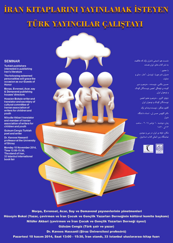 هم زمان با برپایی سی سومین نمایشگاه بین المللی کتاب استانبول نشست هم اندیشی با ناشران ترک علاقمند به نشر آثار ایران برگزار می شود. به گزارش روابط عمومی موسسه نمایشگاههای فرهنگی ایران، هم زمان با برپایی سی سومین نمایشگاه بین المللی کتاب استانبول که از تاریخ هشت تا یازده نوامبر 2014 برابر با هفده تا بیست آبان ماه سال جاری برپا می شود، نشست هم اندیشی ناشران ترک علاقمند به نشر کتاب های ایران هستند برگزار می شود. در ...